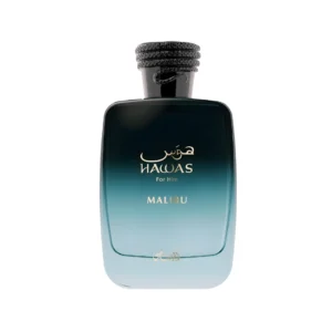 Hawas Malibu – Rasasi es una fragancia masculina dulce-fresca, con un aire tropical y relajado, ideal para quienes buscan un perfume moderno con vibra veraniega.